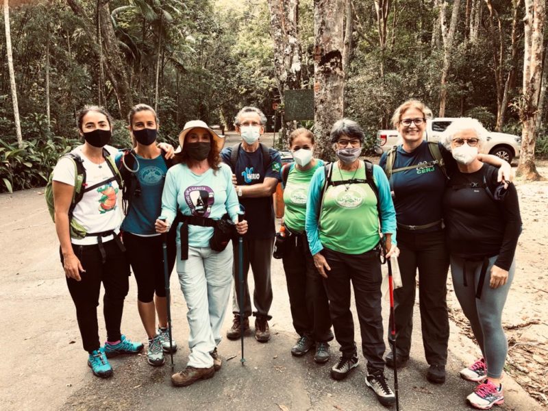 Primeiramente, seguimos para o Alto do Cruzeiro, com a trilha em boas condições e bem sinalizada, onde fizemos a primeira parada. Essa trilha, pela facilidade de acesso e ótima orientação, se presta para atividades com crianças e idosos (nos anos anteriores, foi a escolhida para Caminhada dos Veteranos das Montanhas, atividade realizada em conjunto com o CEB, CREJ e CEG).