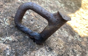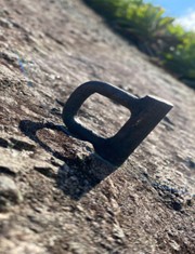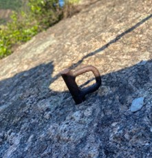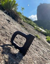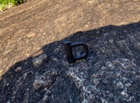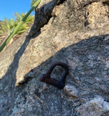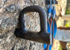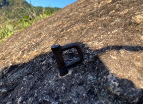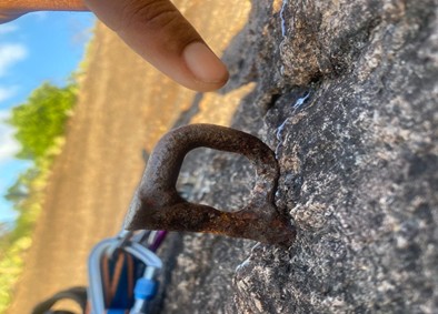 Foto 1: Um dos grampos, que foi substituído, da primeira parada e proteção.