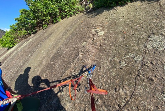 Fizemos o rapel até a P2 e, ao chegar lá, instalamos outra chapeleta Bonier.