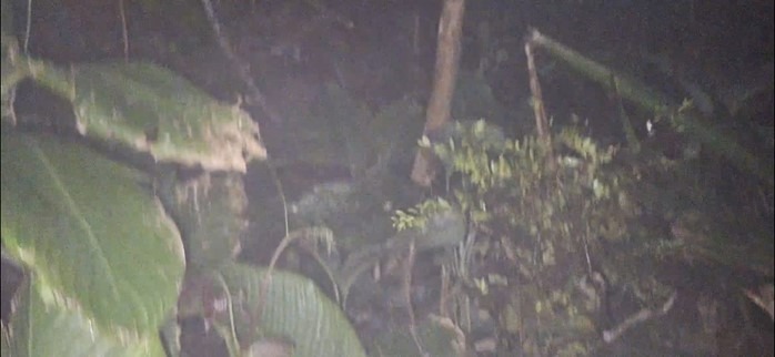 Já não aguentando mais ficar parado, falei para o Henri ir para o platô que eu precisava descer para movimentar o corpo. Após chegar ao platô falei para ele verificar novamente se dava para se ancorar na árvore ou se tinha algum ponto para se prender que eu desceria até o grampo que ele tinha passado ou até o platô para ver a possibilidade de ficarmos ali até amanhecer já que era um platô que geraria menor desconforto que ficar parado em um grampo e que estava próximo do diedro gerando uma leve proteção a mais contra a chuva.