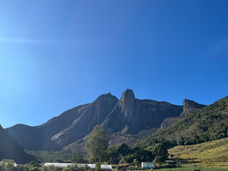 O clímax visual foi arrebatador: o Vale dos Frades banhado pela luz do fim de tarde, com vista privilegiada do morro dos Cabritos e dos Três Picos, os pés mergulhados na água gelada do rio, e o deleite inesperado de colher frutas cítricas maduras diretamente do pé — limões, laranjas e, com muito orgulho regional, bergamotas (e não tangerinas!).